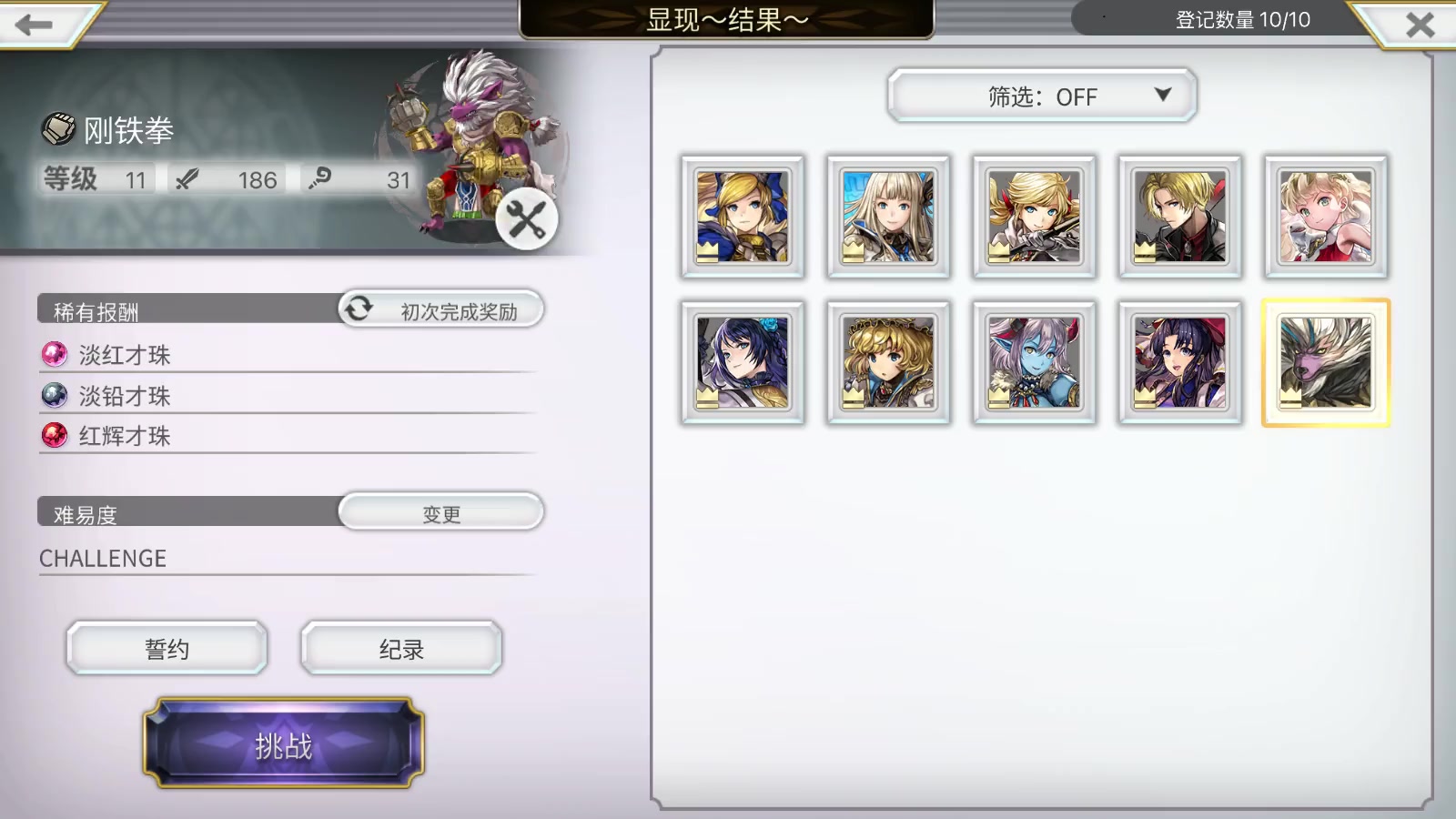 AF:3331 22-- 1111… 星爆0312,AF:1111… 操作简单,但1T伤害有点极限,低天冥可能打不死… 菲奈最有用的一集,加力智速、给贯穿、拉AF条[表情_吃瓜]