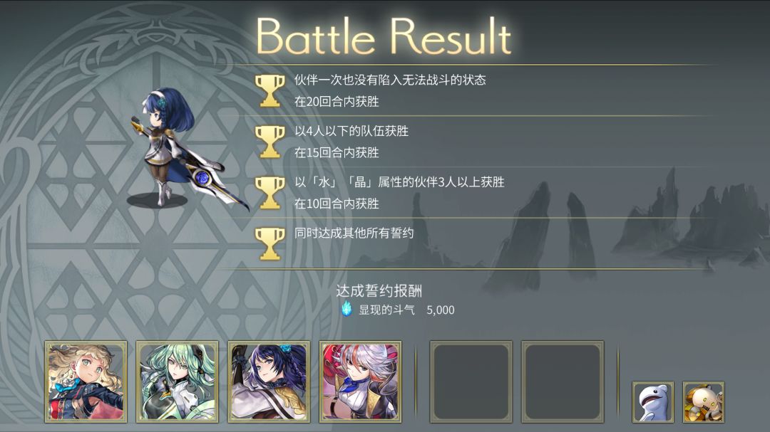 明天版本更新后誓约条件可能会变 今天打完能多拿5000斗气 7616需要80冥 晶刀 水枪 无所谓 狼姐冥值越高越好 第二回合伤害不够就没办法了