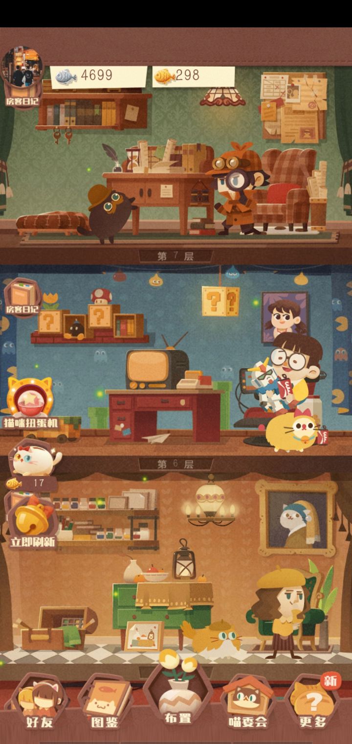 铲屎官们早上好呀(其实已经不早了😳)最近的问题都在这回复了。相信大多数铲屎官想的还是催更问题,策划大大在官群已经放出了消息,预计3月底前一定…吧😏一、楼层猫以及猫粮还有浮空喵1.楼层猫,10只是固定的,但是放在哪个楼层没有限制,只要是楼层猫,放在了楼层上,专属房客就会出现;2.猫粮,不同的猫粮,最简单直白的来讲,越贵的效果越佳,提高楼层收租金银比(正常1h收一次租)。最近翻了下论坛,别人的观