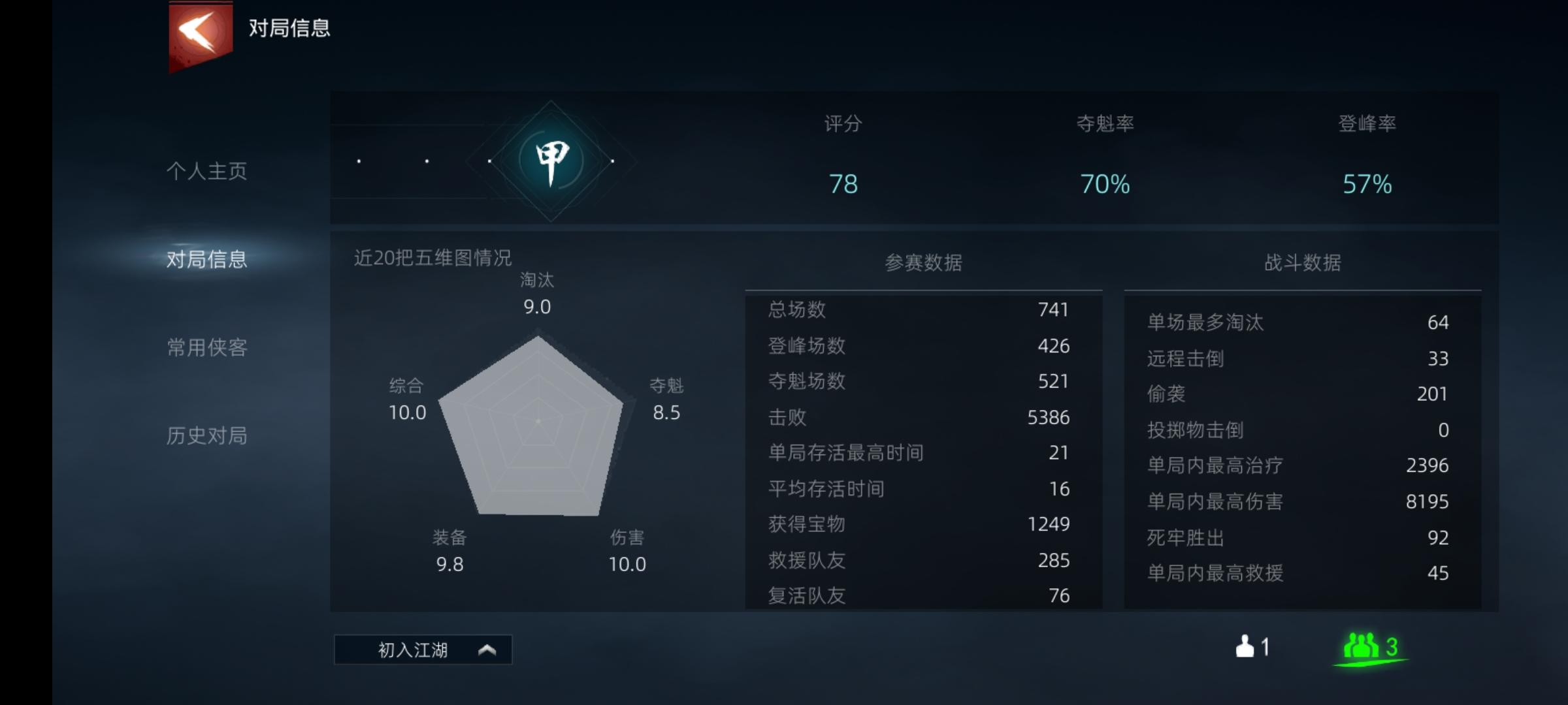 榜上8000+的一个人(名字是北凉丶玄烨)单局最多淘汰64个这不是外挂就是bug了吧!