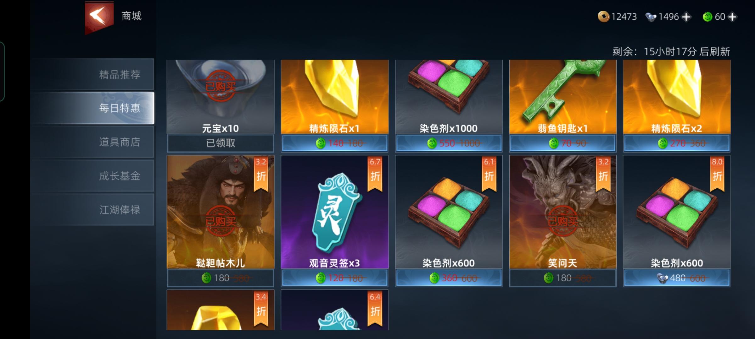 我本来不想来开喷,那么多bug,我免费当洗地人,一次又一次消磨我的耐心,从一开始每日特惠有翡翠买不了侠客,这是什么?简单的数学问题,已经不是什么了,数学没学好,就别继续更新了,来自己看看,每日特惠更新这样,买过的不让买了你管叫每日特惠?那买光以后每天都不用看没每日特惠了对吧?我买之前仔细看的精品推荐,公开诈骗?买完左上角调整成5个,礼包上面写10,你别告诉我到时候和段位奖励一样,就给个元宝什么观音灵签补偿,我是shabi?你是shabi?你当玩家是什么?更新没做好,出那么多氪金点,在玩家心中就是卷钱跑路懂不懂?补偿全服10连花舞都不够诚意的好吧