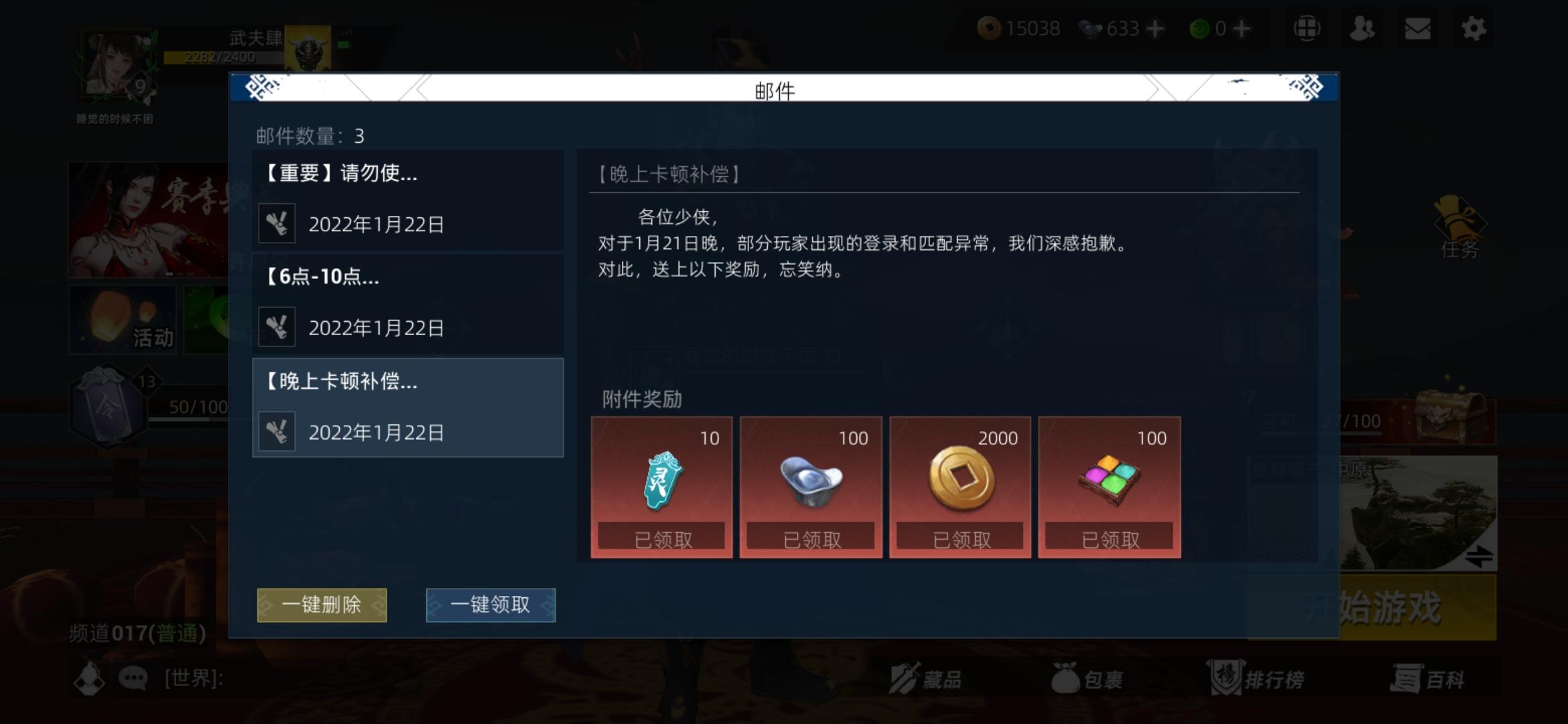 观音灵签从20个卡到10个,有两个邮件,但是只领到了10