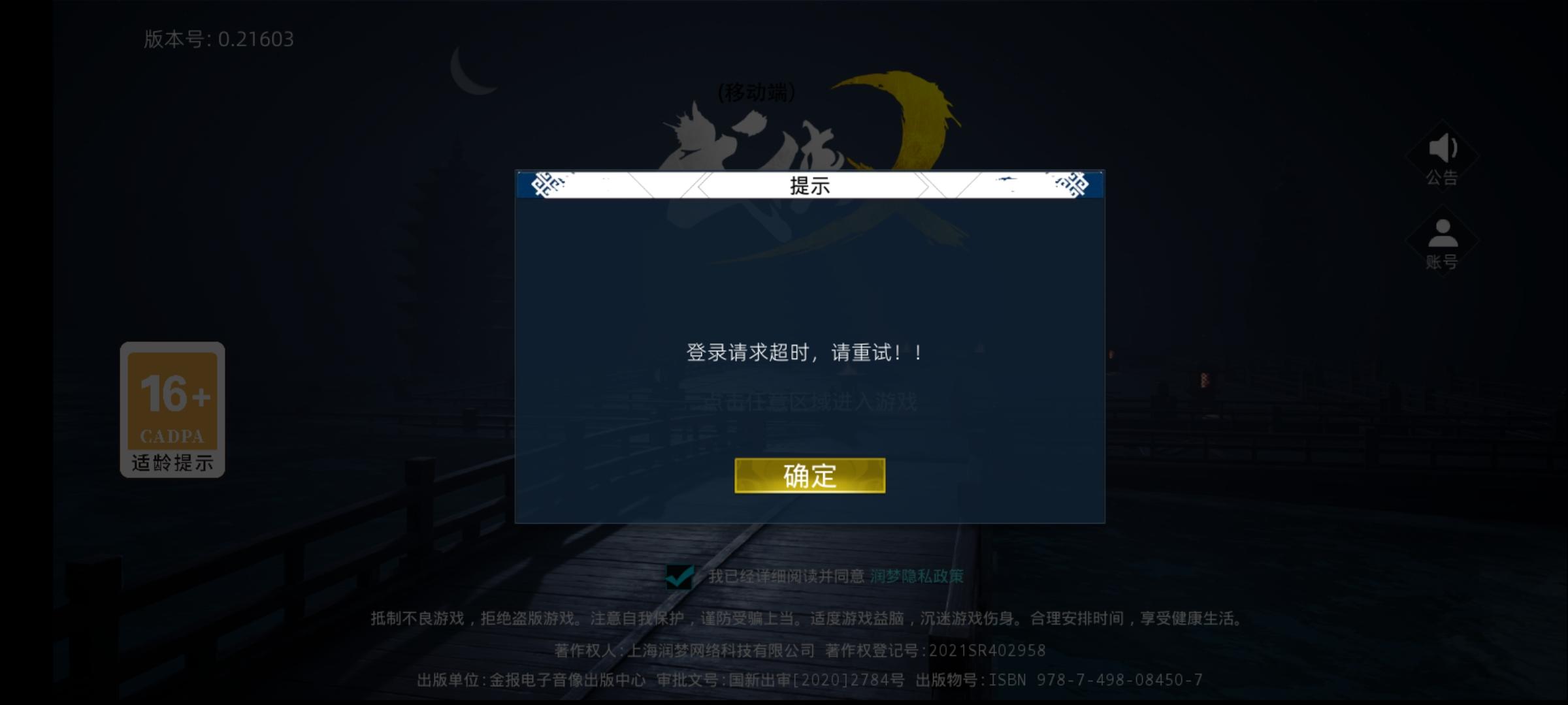 话说为什么更新之后还是进不去显示登录超时,所有的方法都试了一遍,手机关机、换网络、用加速器通通都不行,策划们能不能上点心啊😤😤😤