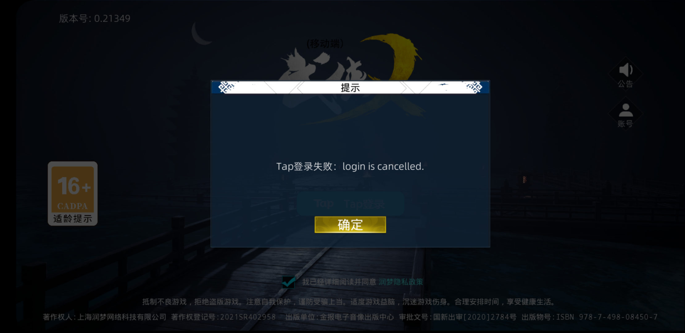 朋友们,问一下这是怎么回事?点登录跳转tap之后加载了一会又跳转到游戏了,之后就显示这个,试了好几次了