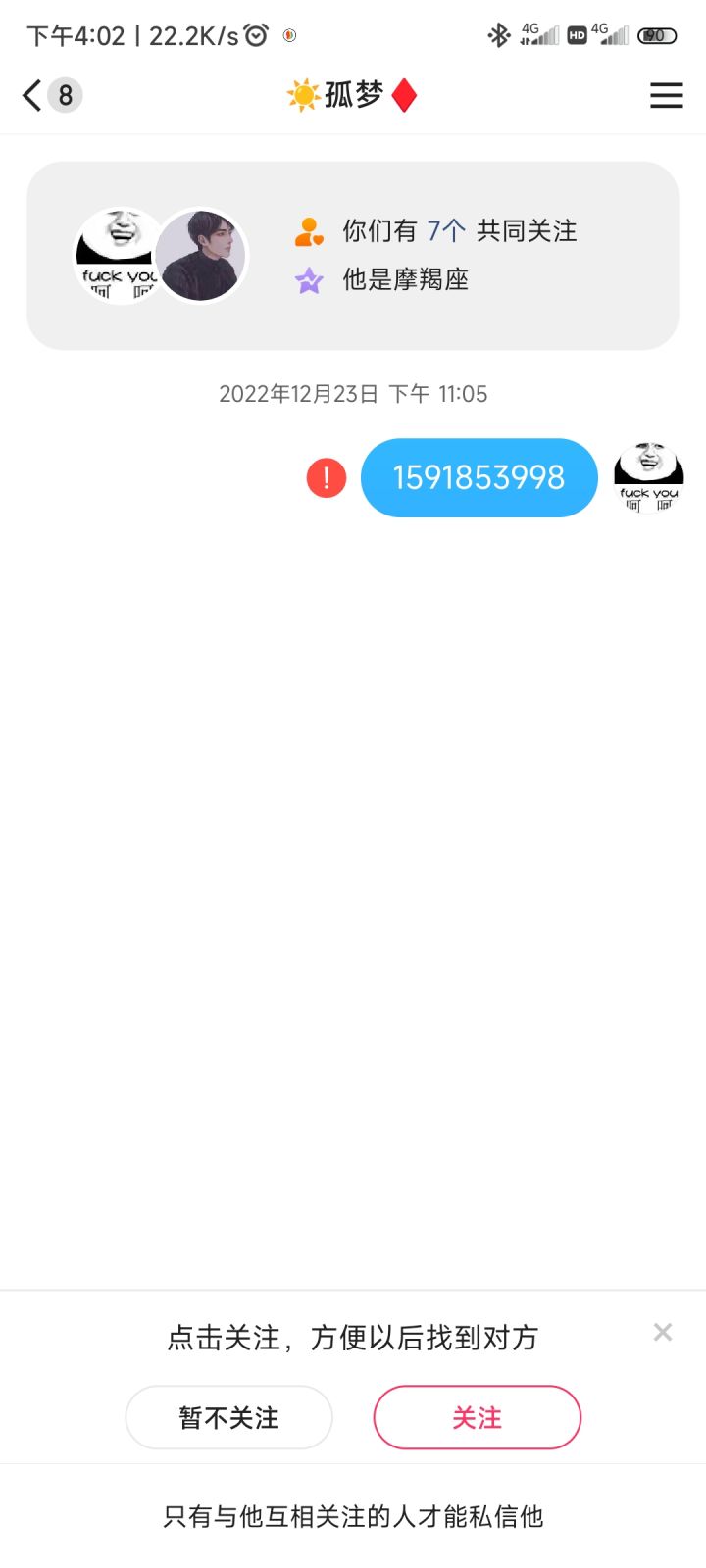 骗子孤梦 希望更多人看见 还有的人说不是他 请说不是他的人看看 他的第一个号 是不是孤梦本人的 然后还有人说我加错了 我12月23日在他的直播间加的 他那天卖的第一个号就是我买的