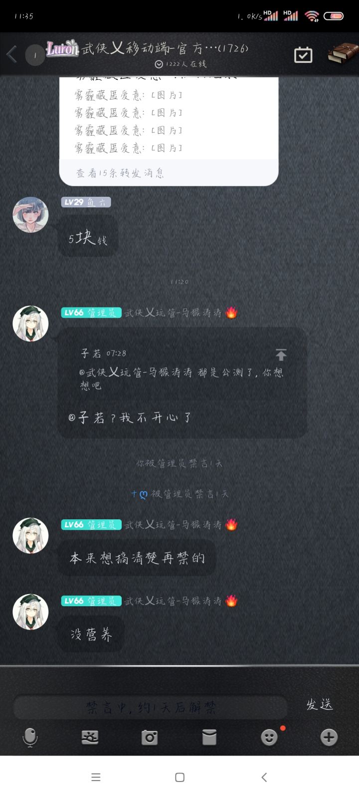 这就是官方QQ群的管理员的态度,是管理员了,就没有理由就禁人,我说公测了还有bug,难道有问题吗?赶紧给我一个说法。那个管理员我不想理。