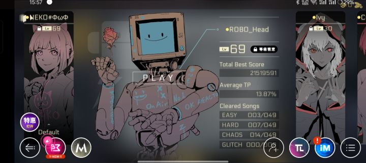 (不知道是不是要放在这个栏目,不合适的话可以联系我删帖。)cytus2的双人模式我没试过,就想找个搭子,尽量长期,水平差不多的最好,能别把我虐太狠的那种(哭哭脸)。成绩贴上面了,11级~14级的谱基本能85以上(臭萝卜除外)。我是23年入坑,玩了一个月,因为学习被制裁了,一直到今年放暑假才解封。八月十五号以后能不能玩暂定,但在此之前随call随到。平时也可以交流心得,但我感觉行不通,因为我很讨厌