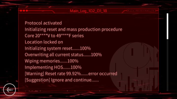 按照时间把剧情从头到尾整理一下,有不全的地方希望大家可以指出。(严重剧透!)一下说不完(绝对说不完-_-||),不定期更新。102_01_18(Ivy)没什么说的。。。应该是OPCI_2501_IV(Ivy)的开机自检。142_??_??(Ivy)OPCI_2501_IV发现自己重复着日复一日的检查与工作,并且发现其他的机器人也做着一样的事情。它发现自己与其他人不一样,认为是自己出现异常,