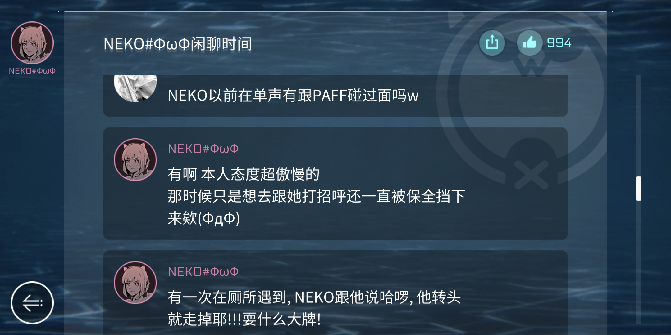 今天开着语音通话玩着玩着,这首歌刚打到开始没多久,也就刚玩几十秒吧,突然就结束了,然后给了我一个这个评价界面。。。嗯???????这是通过我玩的几十秒游戏就预测好了我的总评分然后直接给了分?会不会和语音通话有关系呢,由于玩的时候因为懒(划掉)没插耳机,游戏声音也是通话喇叭传出来的,给了我一种强烈的因为语音通话引起这个bug的既视感。