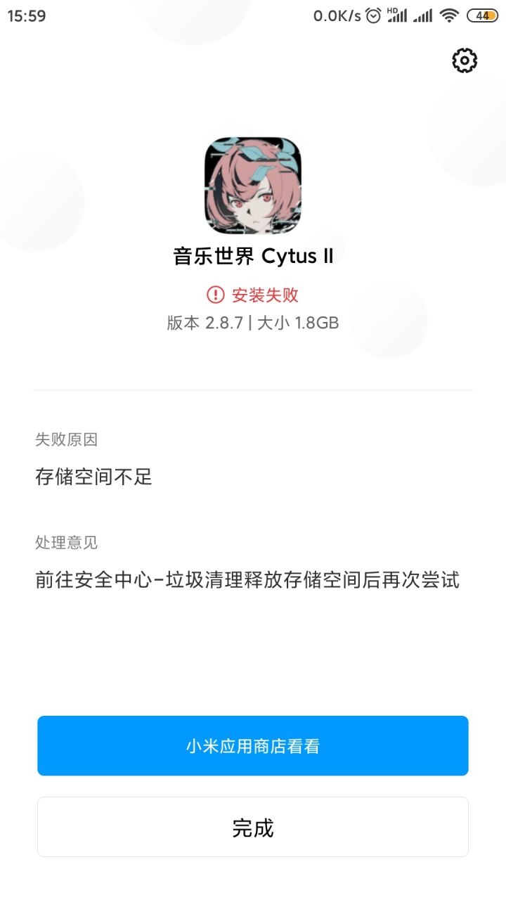 本人小米note3用户,想问一下装cytus的时候手机要留多少空间,taptap上的两个安装线路都试过了,无法安装