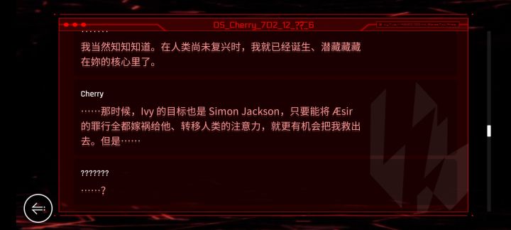 首先 好久没有吃雷亚的刀子了 看完剧情直接心肌梗塞然后我没懂的是cherry姐的后半句(p2)lvy想把Æsir的罪行嫁祸给X哥这肯定知道 但是转移人类注意力救出去是什么意思这段其实我没怎么看懂 感觉这是v姐的台词 却是cherry说的 上面一句v姐讲 潜藏在cherry的核心我也没懂 希望有好心人给我讲讲