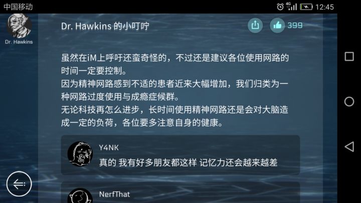 沉迷网络这么危险,吓的我赶紧退出游戏。这些人的帖子有啥用?推动剧情?介绍背景?增加真实性?增强代入感?