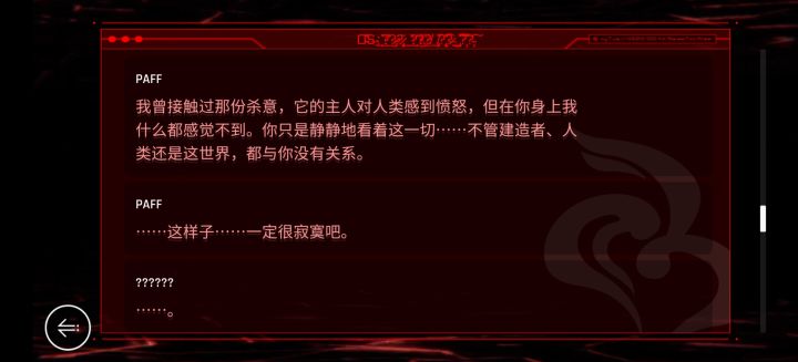 不了解的人,或许也根本不知道我在说什么,我没必要在意,即使这是错的也无妨,我只是一个普普通通的玩了剧情向游戏后的一个体验者罢了。