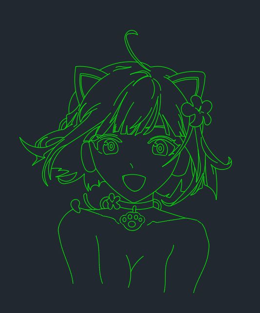 这里提醒一下工科生(+1):本来应该用别的软件做的,我是后来才发现,原来CAD不支持输出成图片!所以没办法了 ,将计就计,直接输出DWG,然后就可以用各种工具(例如,数控铣床😋,数控车床😑,靠手😱)来制作拥有NEKO图案的各种金属物品,自制钥匙扣等等,,