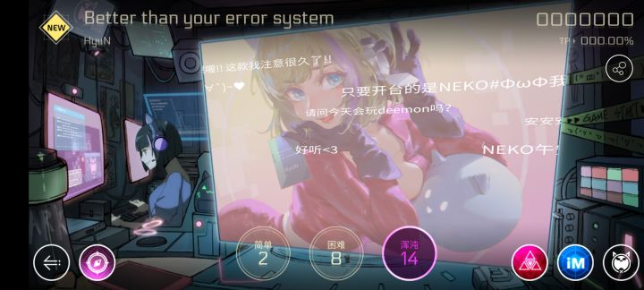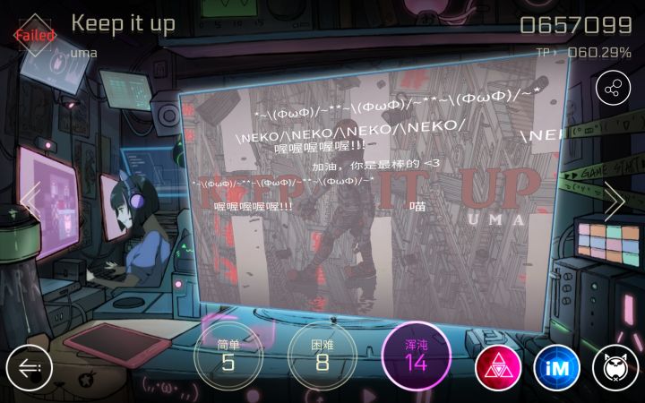 那是什么问题?打歪了呗!我真的觉得让我这个连宇宙交互都没打上过几次,就算是翡翠鸡的稍微带点位移的交互都能漏的菜鸡来讲怎么面对note的横向位移,活像一个🤡。不过现在我有在练啦,虽然宇宙交互还是不怎么行,但是一些稍微带一点位移的谱面已经有一点心得了,比如以出张作为主要特点的liberation绿谱,今天已经打到9911了。3.9更新之后跟声对线了好多次,问题是太不稳定了,你们敢信,我最好的成绩