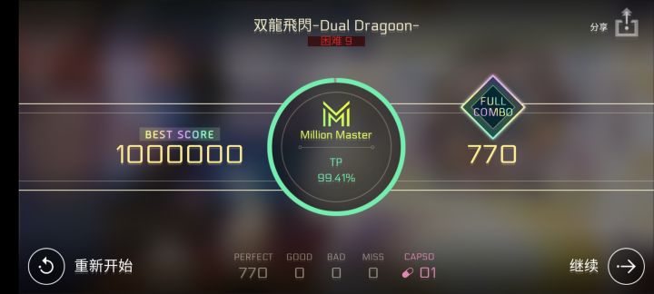 我因为喜欢这首歌所以总是会多打几遍可是一直没能突破90w难关(对我自己而言的难关),可是就在刚刚我居然打到了93w的分数!我太开心了朋友们!!忍不住在这里跟大家分享我的喜悦!!!