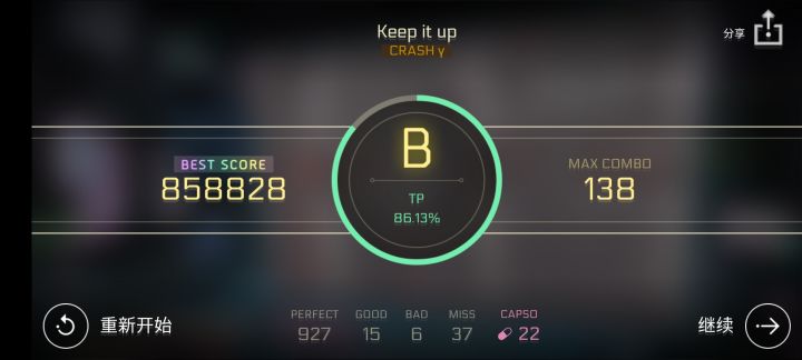 解锁了crash瞎点完keep it up好像水平有了一丢丢突破。。。话说这首的crash好恐怖。。。。