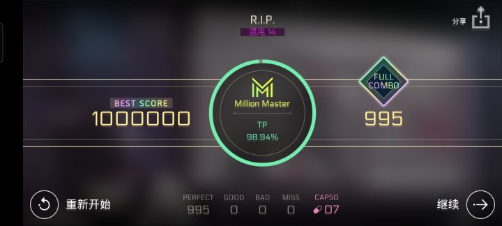 也是MM了,虽然98.94推了21分钟还记得两年前看这谱面一点都看不明白,现在mm了,突然感觉自己老了