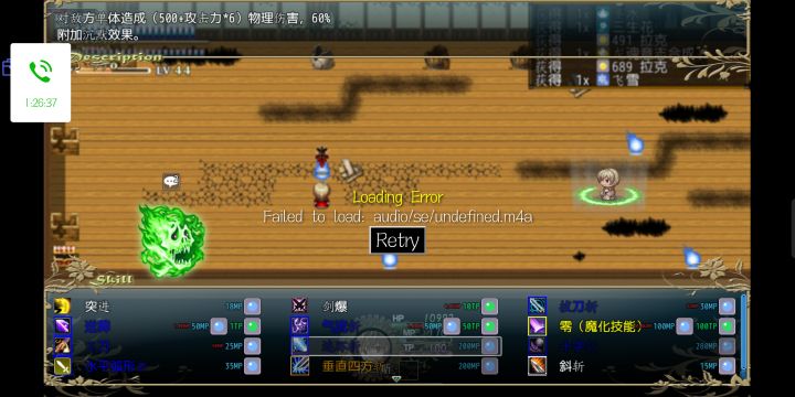 一旦放完连环斩就出现这种情况,提示出现的时候只能点Retry其他的都动不了,点完过一会又出来了,只能重新进游戏