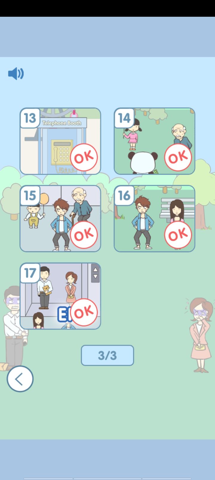 玩法有点单调,电梯那关重复很多次,最后一关让人意想不到,有点暖心呢,游戏挺不错的,就是有点太简单了,很轻松就过去的,希望可以加点难度,关卡也较少,望改进