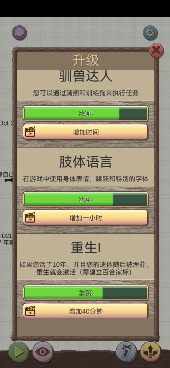 好耶!!终于!!都刷满了!!开心~刷技能的小技巧分享:一共十六个技能出现新技能的条件是一轮生命结束后,所有技能条都还有时间。所以我选择将所有进度条都刷满,不给差错留一点点机会!o(o・`з・´o)ノ!!!(看了超久广告呢,分屏刷着抖音,时间过得还是很快的)四次夏娃百分百可以刷出一个新经验。(一次46分钟)宝宝的话三次就可以了(能被养大的概率太小了,监狱的话倒是可以)之前以为这些技能是随机赠送的,等了好久驯兽师,现在终于可以骑熊了!✧*。٩(ˊωˋ*)و✧*。