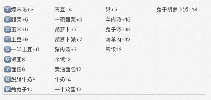 国服ios已经更新啦 也增添了很多好吃又简单的食物呢 我大概总结了一下新的食物和做法 :1⃣️面条(不可单独吃 需搭配猪肉汤或火鸡汤以及水煮的一半鸡蛋和筷子)2⃣️+7:猪肉汤 (往陶罐里倒入两碗水+一块猪肉 放在热煤上煮熟)3⃣️+12:半边鸡蛋 (热煤上放上一碗水 水里放入鸭蛋 用陶盘滑动取出 刀或燧石片划开鸡蛋 重点❗️请不要让水碗处于无蛋状态 只要里面有蛋 这个热煤就是个永动锅 不会