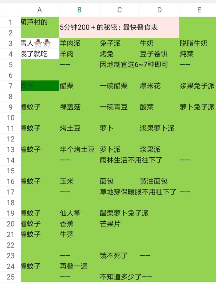 174秒162格美食奖励,这应该是最快的叠食表了吧
