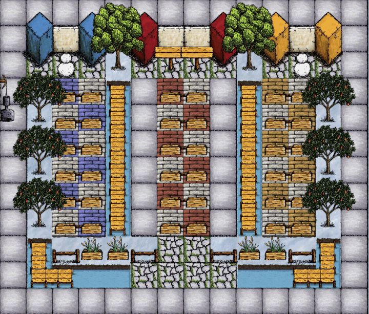 1.设计的时候想的是聚会合照场地。后面比较倾向放复读机。也可以作为擂台争霸赛和室友比赛。河道换成玫瑰花(还是河道好看)最后说一句蓝白配yyds!!!2.模仿pp风格设计的仓库(橡胶树、古老石地板、桥、墙👻😻)3.打铁区和仓库之间的缝隙