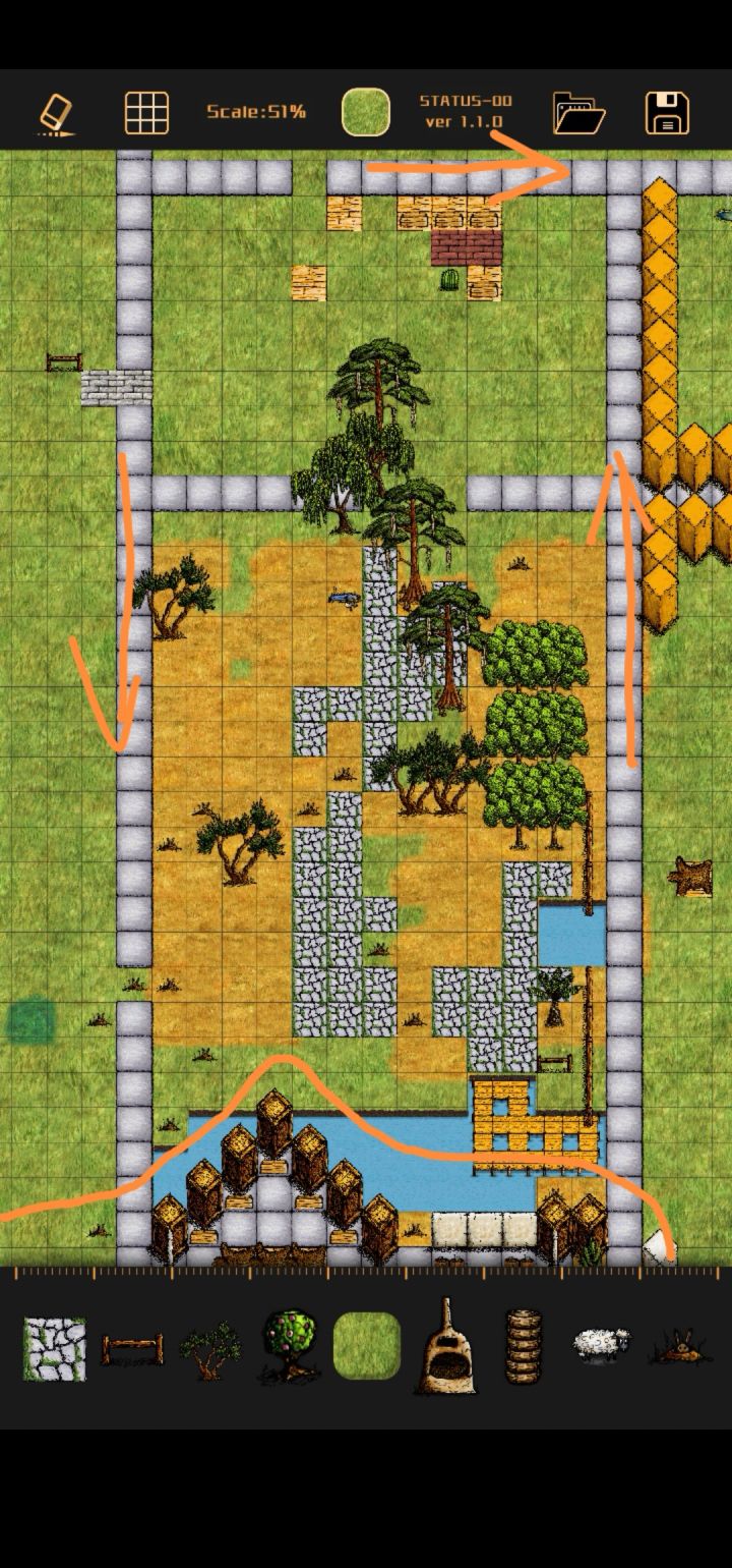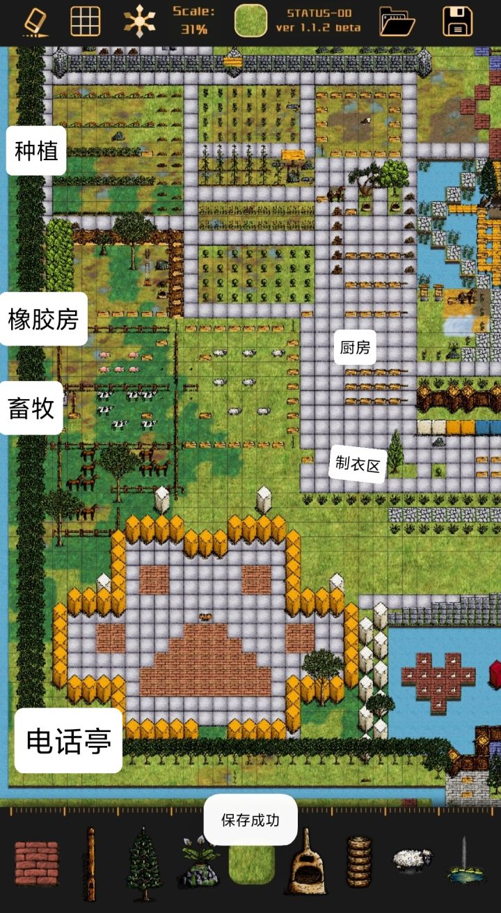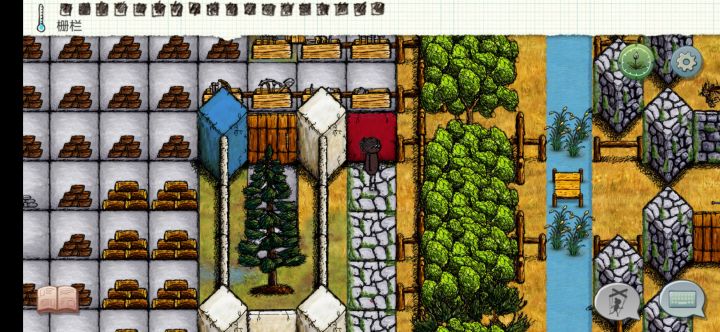 有没有人帮设计一下,下面的房子是不修改的了,两边和上面得有通道,这个地方主要是提供木材,和放钟和储存物资的地方,中间有的大树可以砍掉,但是如果能留下来放风景区是极好的😂自己怎么设计都不好看,要实用又美观的