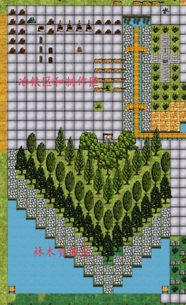根据我家附近环境和现有的资源设计的图,有很多区域还没有做到,我愿称之为“无肝图”哈哈哈哈,其实上边还有一个区域没设计完,是关于抽石油和发展科技的。等我考完试一定肝起来!