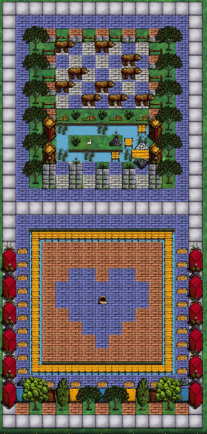 还差一点点东西就肝完了,就差两个三角形和左边那块小房子。经过各位大佬给我设计的这两个三角形,好艰难的决定弄一个蜂房区一个风景区了,大家的设计图都好好看,大家看上了里面其它建筑图都可以用呀。入口→好不容易把图片压缩到刚好10m内,像素模糊了一点点。