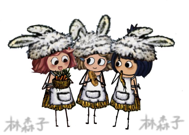 右边粉毛爱吃家养胡萝卜🥕左边蓝毛爱吃野生胡萝卜🥕中间的小金毛爱吃萝卜派🥕用的是游戏内的人物贴图,再加上自己画的#希望之村你是希望