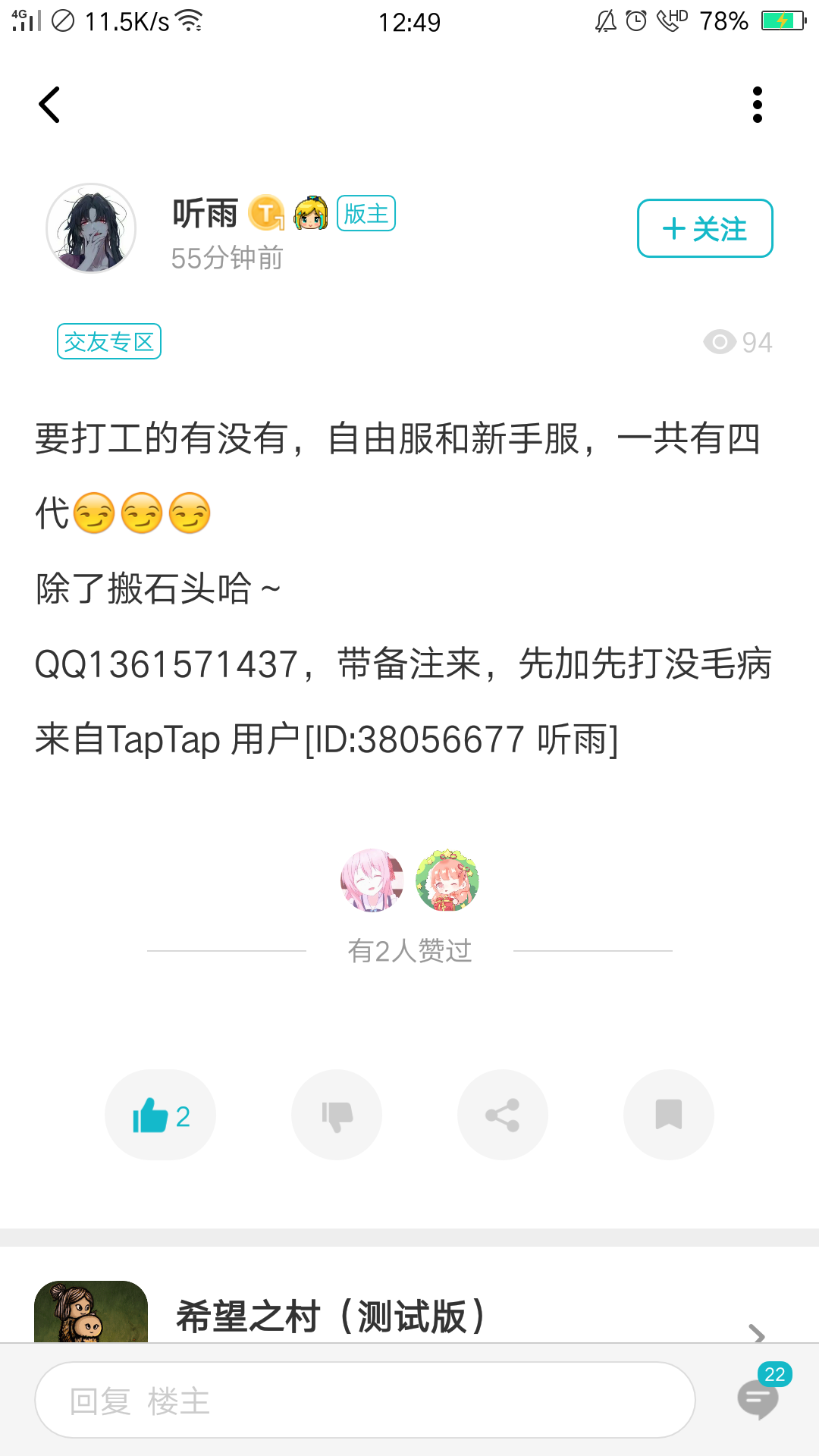 有没有一起玩的小伙伴,老玩家,在绝望之村……哦不对,希望之村很火的时候玩过,后来学业繁忙就删了,最近又下回来了(那时候没有太多时间肝,只肝到了蒸汽毕业)有一起玩的加我QQ:2331533601,我的名字去哪了~,期待回复呐