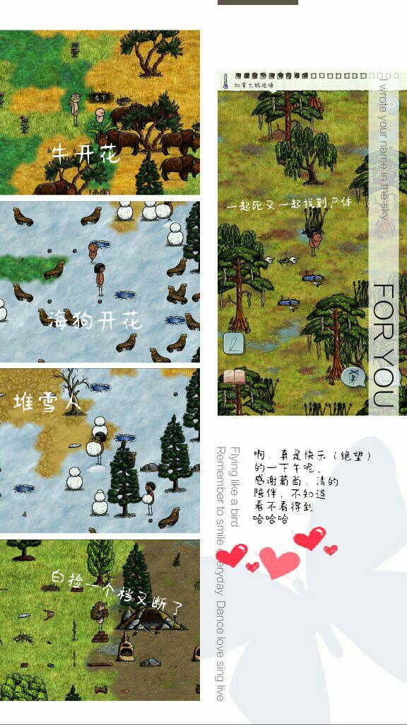 先上图是这样我和我哥年老时,放荡不羁的爱自由(哈哈哈哈哈哈什么鬼)打算浪迹天涯做了两把弓四支箭去杀火鸡,最后我我好像卡了还是不小心让哥哥等我而饿死aaaaa哥哥呀,我完成了我们的心愿然后我又回去收拾了你的骨头来不及说哥哥我杀了火鸡了顶在头上,aa爱死你了,不好意思让你饿死了quq如果你能坚持一会上面有很多吃的呢quq没拍照太着急忘了截都 给 我 哭😭! 找这个这个温柔婆娘快 帮帮孩子吧aa