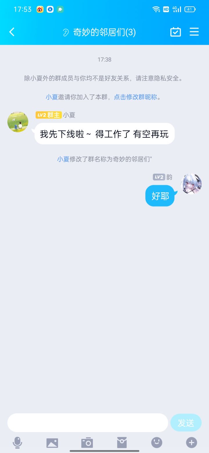 关于我和我的邻居见面了 还碰到了在她家下面的领居这件事 后面拉了个群一起玩~