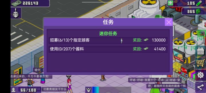 赚钱新思路,把挂机游戏玩成在线游戏。开局买各种低级机器,升级,然后升级店面,开第二条产线,然后靠移机器的办法只留下二级汉堡和二级烤鸡机器,其他机器卖了。然后就只会招到那个很容易升天的顾客,靠他爆原油,油到700,进最大的场靠倒空气币赚钱。适合想玩大富翁胜过想好好经营的人,比如我