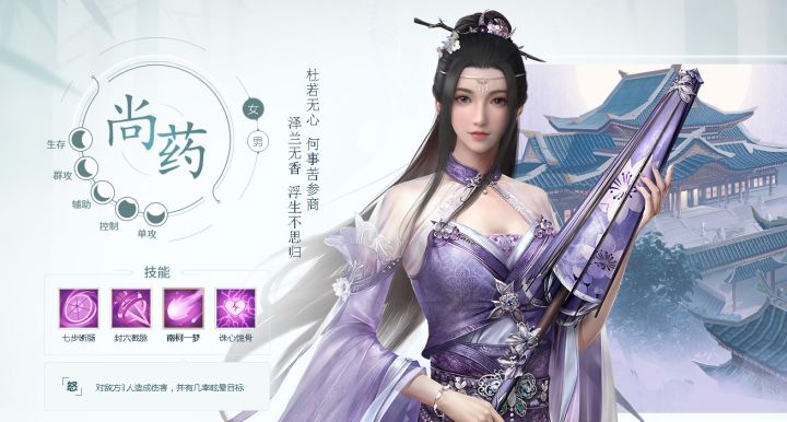 开放的场景、丰富的剧情和动人的搭配,多元养成系统,无论是游戏小白还是骨灰级大神,都有适合你的玩法。下面就为大家带了保姆级新手攻略。第一步 进入游戏,先选职业浮生四个主角职业侍卫、尚药、尚食、学士分别为单攻、控制、辅助、群攻,个人比较倾向于打输出,在单攻和群攻里二选一,后期伤害比较高,是团队的输出C位。控制和辅助属于功能型位置,一个完整的阵容中,需要有打配合,才能克敌取胜。有的玩家喜欢默默奉献的