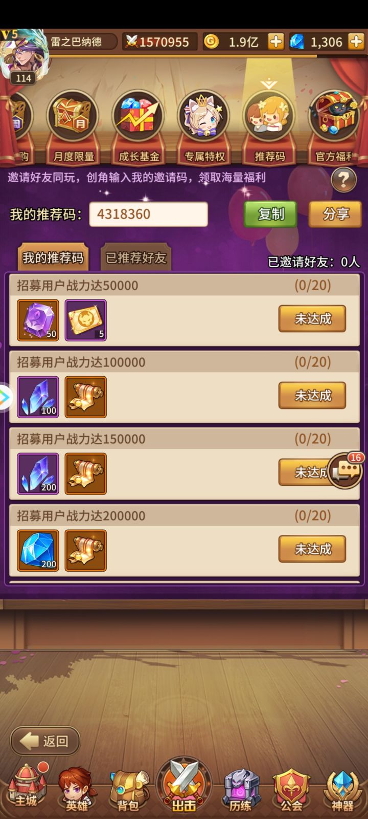 推荐码:2323898 svip888:启示召唤券*1(等级需要达到10) ss520:三十连抽(等级需达到25,仅限新服) yn888:英雄经验*10000 远航刷新券*1 钻石*100 bc666:金币*50000 普通召唤券*2 竞技挑战券*2 探宝券*2ss888:远航刷新券*1 钻石*100 探宝券*1 fs888:英雄经验*10000 金币*10000 炼神石*5 符文精华*100 ok666:金币*100000 竞技挑战券*1 远航刷新券*1 钻石*50