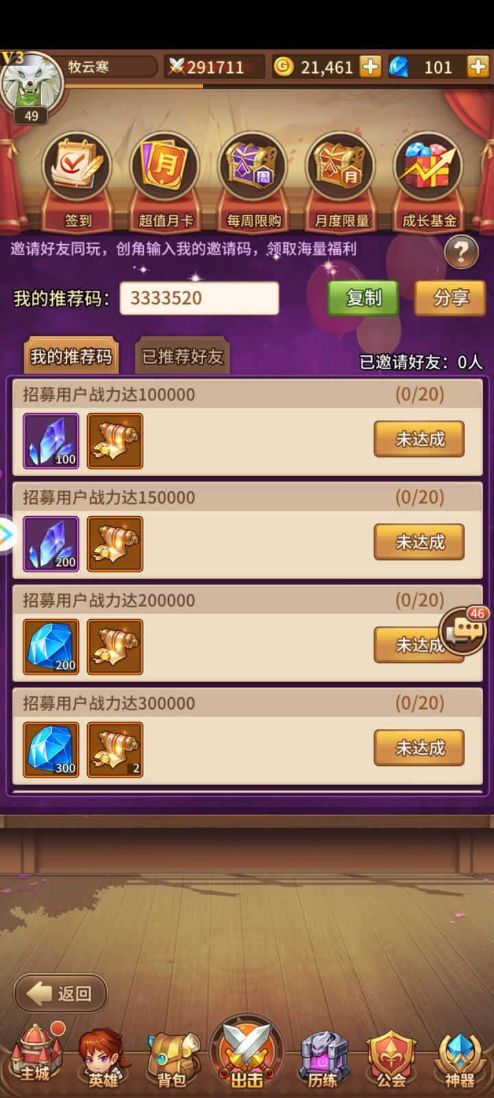 奇奇怪怪的推荐码(话说我都四十多级了还能填推荐码吗?刚开始玩的时候跳推荐码界面的时候我手一抖给点没了)