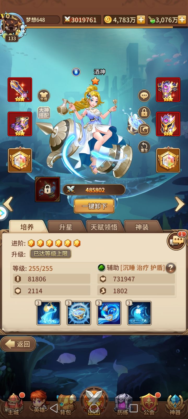 零氪肝了半年的成果,准备等到女娲返场的时候,把酒神换下来,话说我这养的算不算废啊?😏