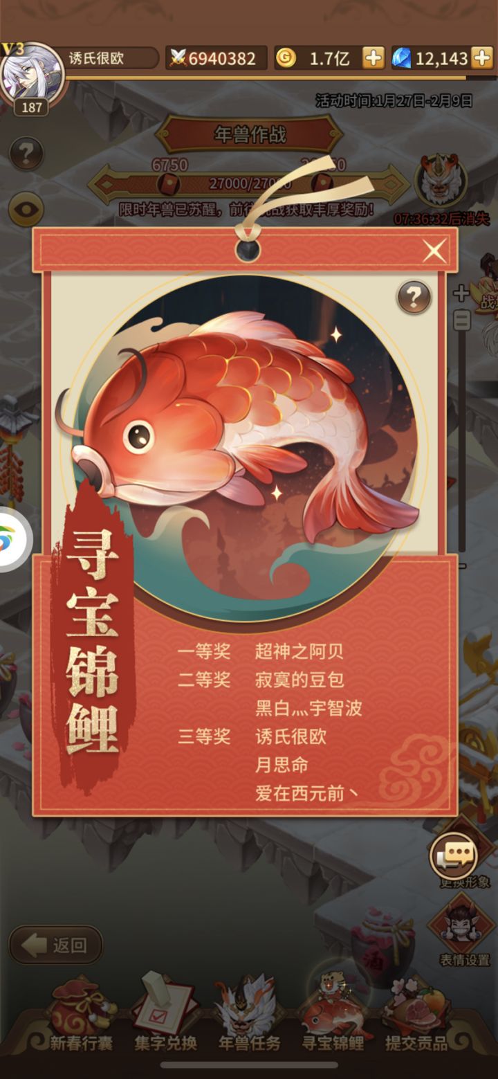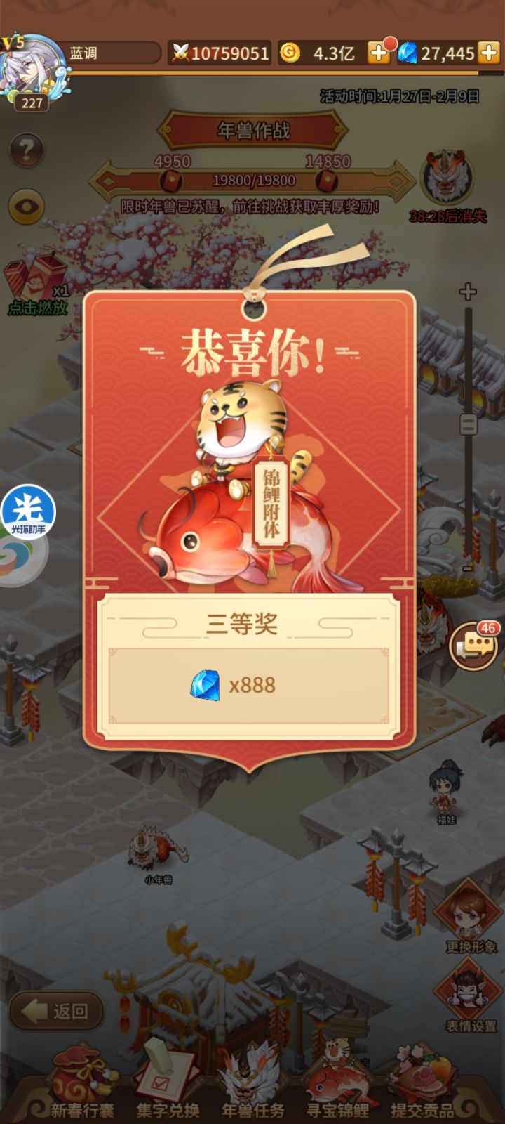 【春节】晒一波小欧气终于要春节啦~今天也有幸小欧了一把,单抽出了龙女,年兽作战中也中了锦鲤三等奖(三等奖已经超满足了😭)希望大家新的一年也要一起欧下去啊~~