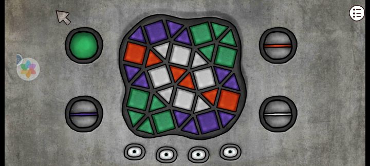 那个红白绿紫门,好多人来解答都不说原理。我来讲下,其实很简单,就是4步变同色。连起来的可以一起变色,不连的不行。应该够清楚了吧。最终是4下把所有的变成同一种颜色。