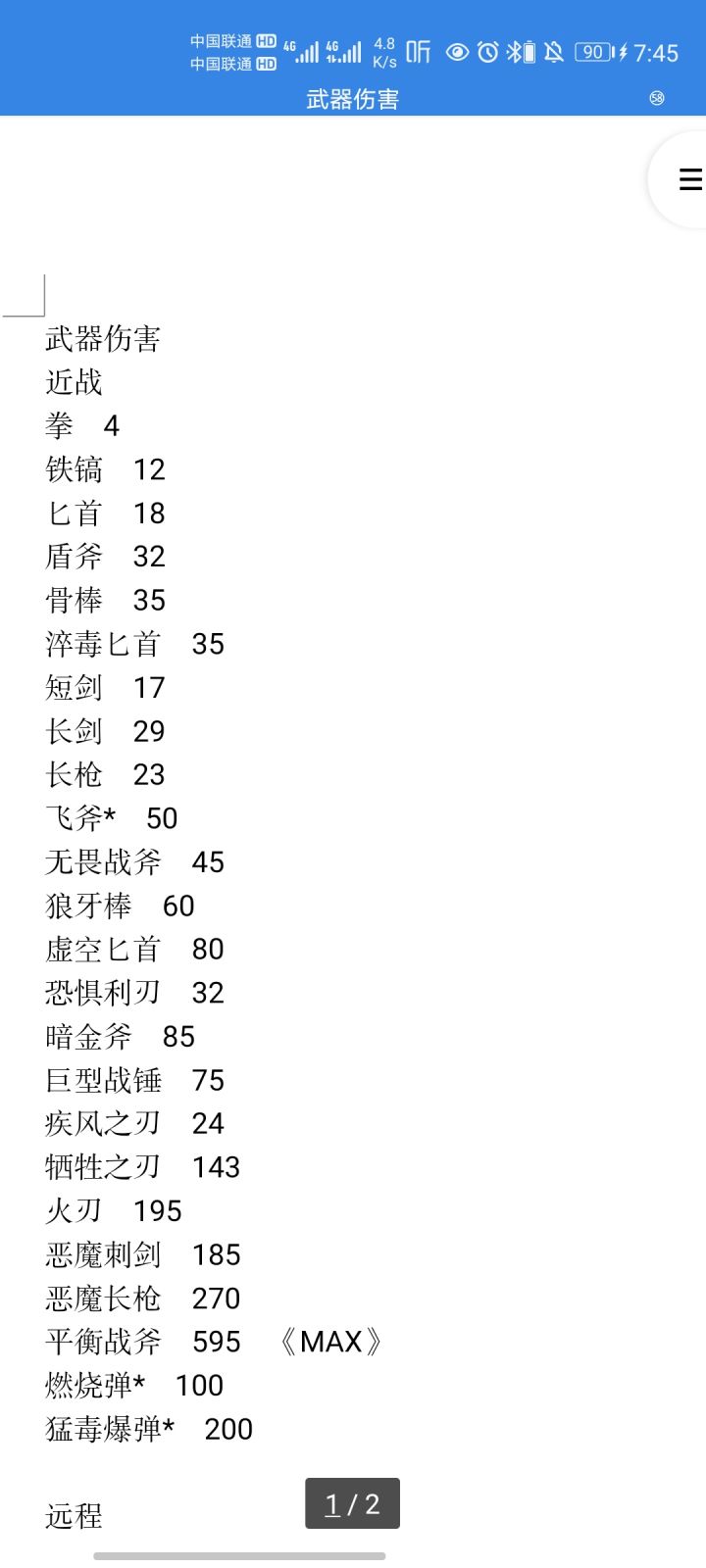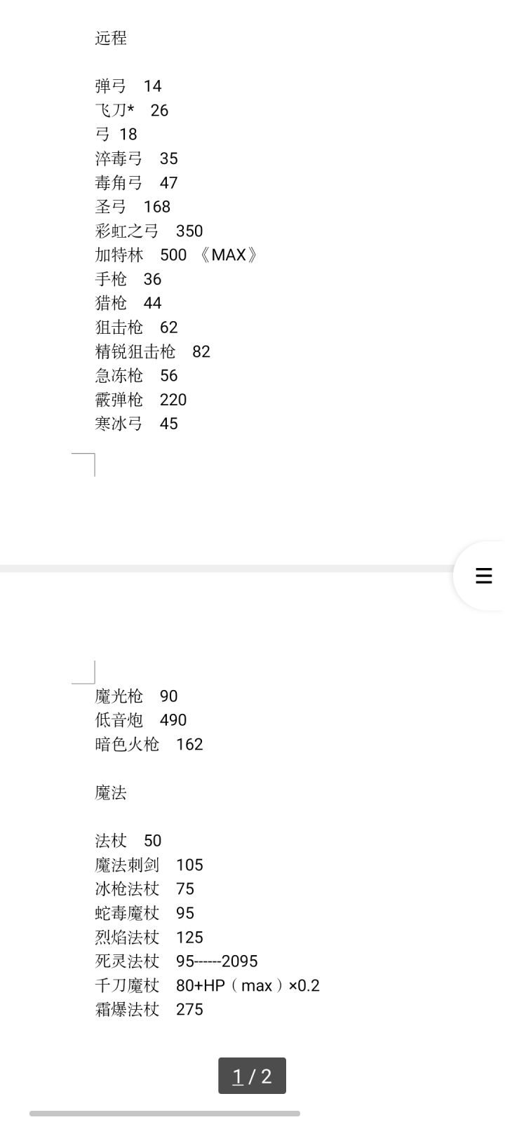 记录部分武器威力