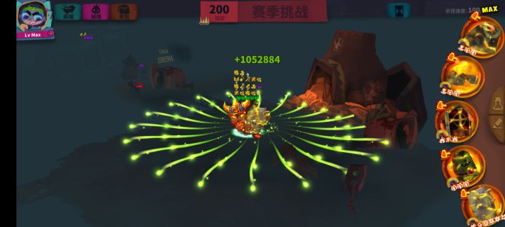 179.9万的生命,每秒回复105万的生命,每个投射物1260万以上的伤害,投射物最大值(20max),还有上升空间。
