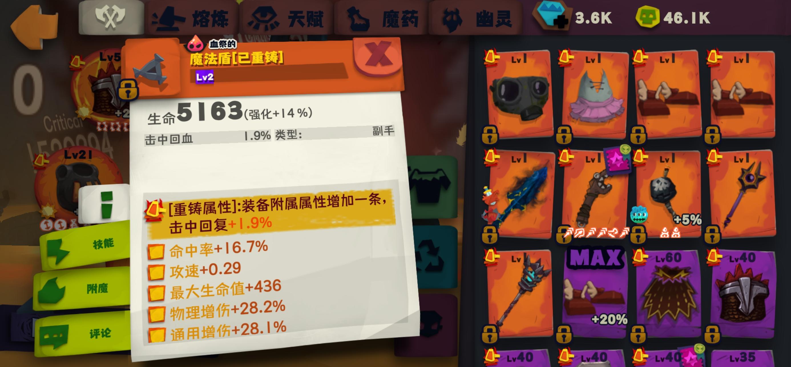 昨天才洗好一个 今天又掉个双属性。。如果二属性是击中回复那就爽了!建议这个游戏把随机属性和套装属性改成 五个或者十个高级熔炼石兑换任何一个自己想要的属性!反正是刷刷刷!还有那些主动施法的装备,我真不知道有几个人会用,建议把除武器以外的装备全部调整为开关施法!本事就一个挂机刷刷的游戏,最大的乐趣也就在武器上面。试问有几个还在防具上点来点去!