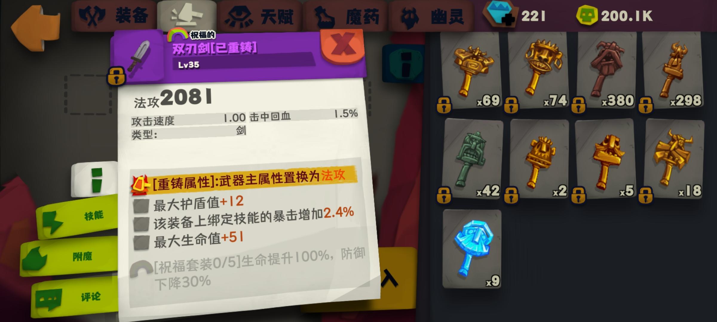 先晒一波【一发入魂】回来发现悬浮血爆被大砍了,取消了【光环加成】的幽灵部门 挪到法杖专精去了,【野蛮之力】也没了。但是照样不影响我玩悬浮。出了个新的重铸属性,然后给鞋子搞了一发,【帽子属性】的鞋子原本轻松上500W血,现在....请看...所以我个人觉得这个赛季主要就是要肝【矿井-高级升级石】、【异界-重铸石(每周)】、金币是真的跟倒水一样,可悲的是上个赛季没有多刷钱。