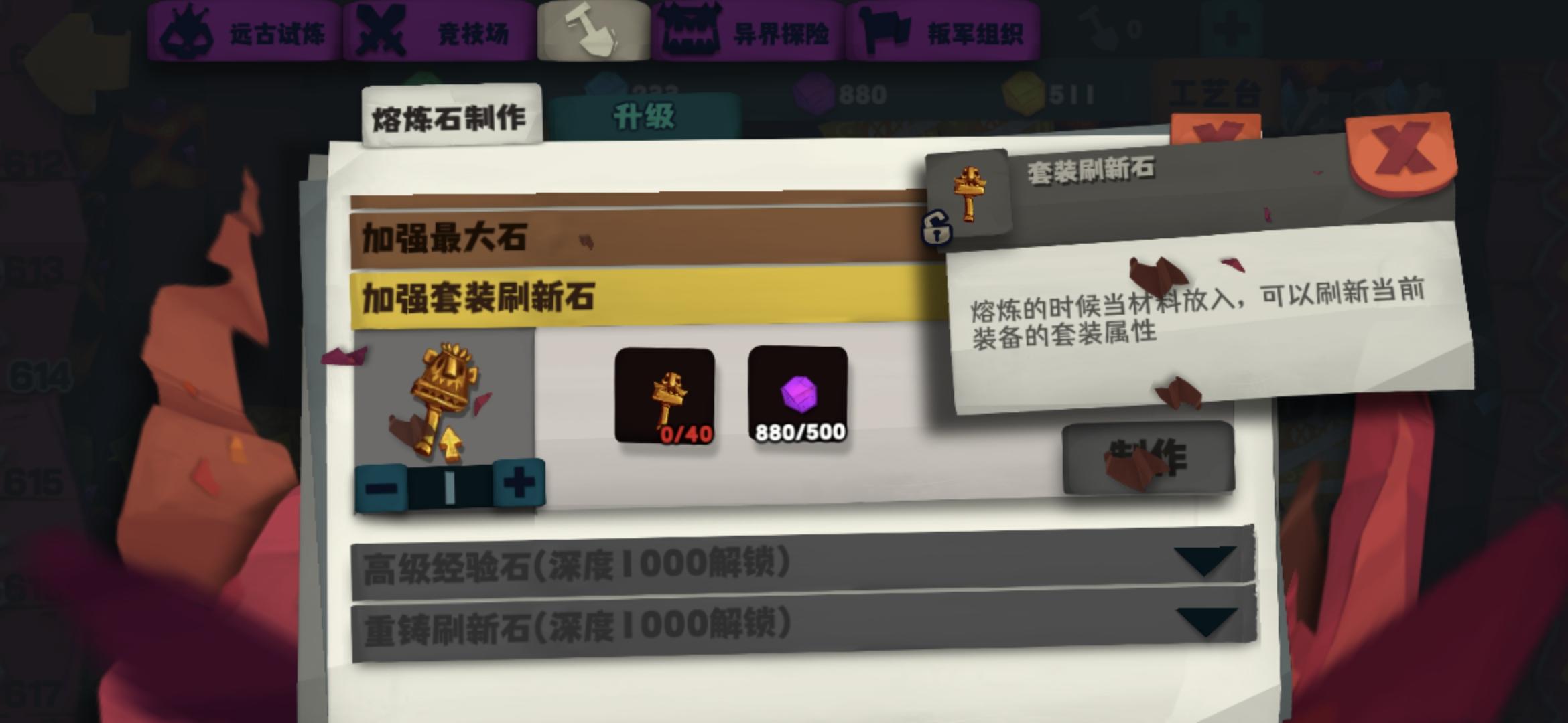 血爆1000层还打的动吗?这个套装石刷新要40个才能做一个特定😂本身刷新石都很难,有40个你愿意一个一个刷,还是买一个特定?