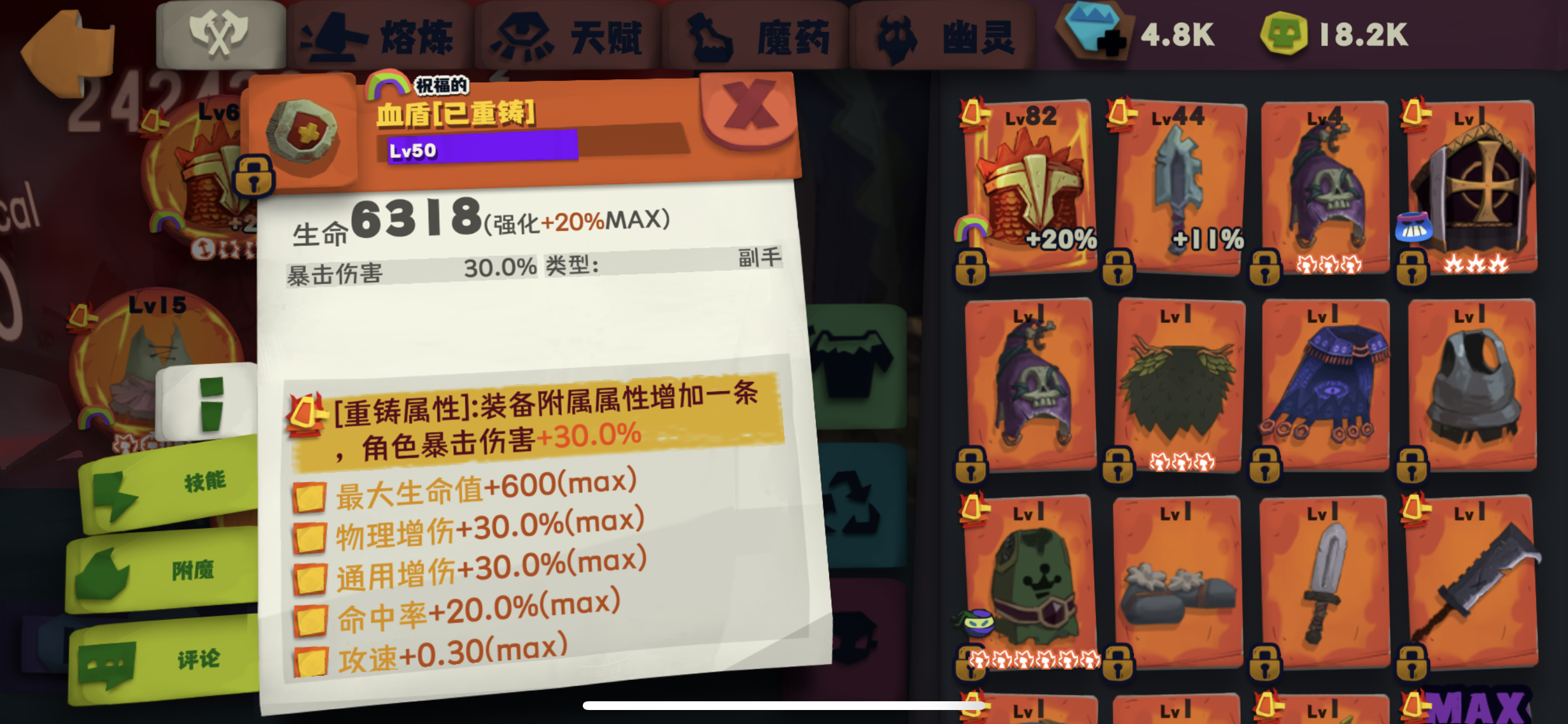 血爆基础毕业咯~其实还差6只工艺幽灵,太难刷了。慢慢来吧可以慢慢存资源搞狂战双套了~开始养老