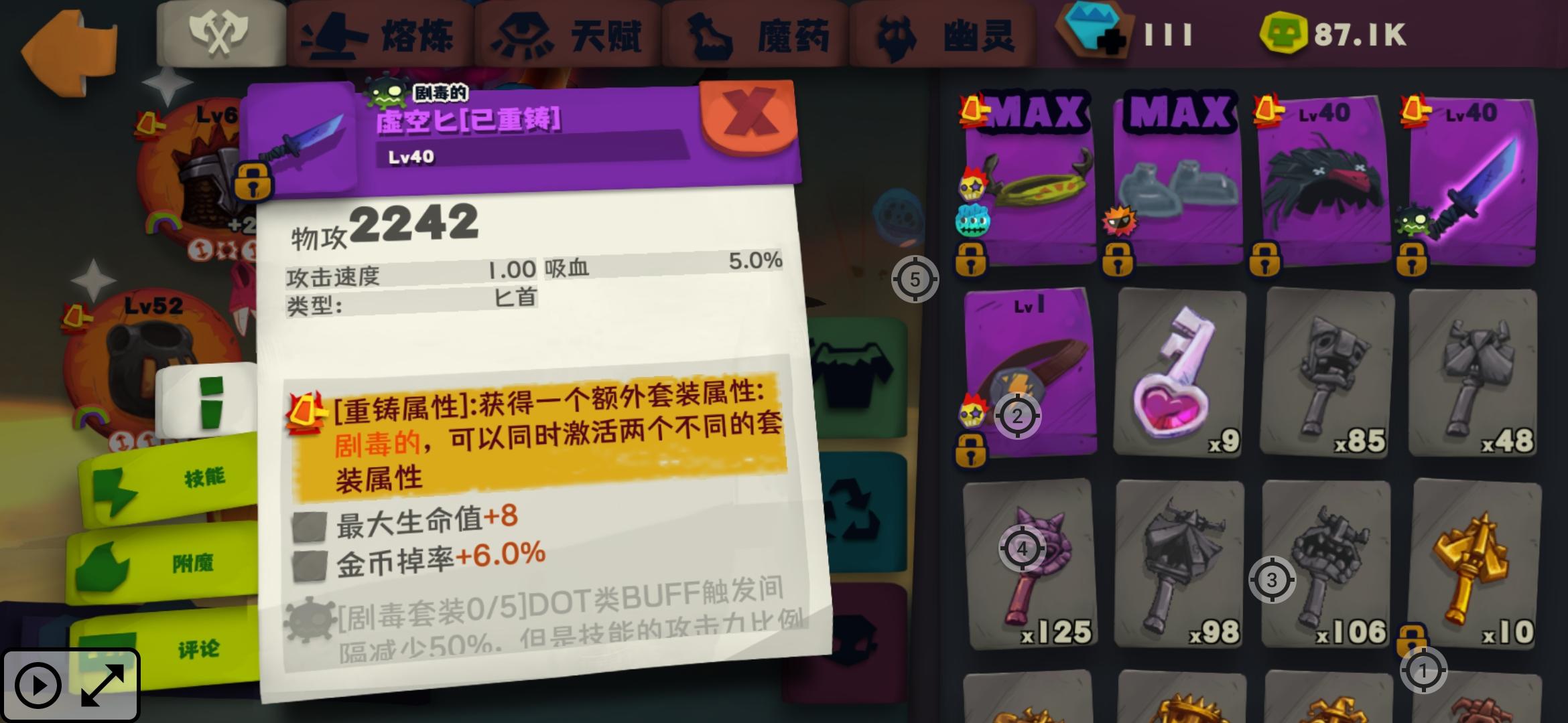 更新的是个毛线啊?异界掉率明显降低了,主副手满掉率,加祝福掉率10%的词条,两个小时也就掉了五件重铸,以前打三五次就能掉一件重铸,掉的是垃圾也就忍了,结果连掉都不掉了玩个毛线啊?主副手的物品掉率只管掉魔药材料了吗?这一早上刷的,梦碎异界,时间都喂狗了!连个保底都没有,哪怕杀怪次数积分换任意的重铸呢,一言难尽啊!垃圾游戏