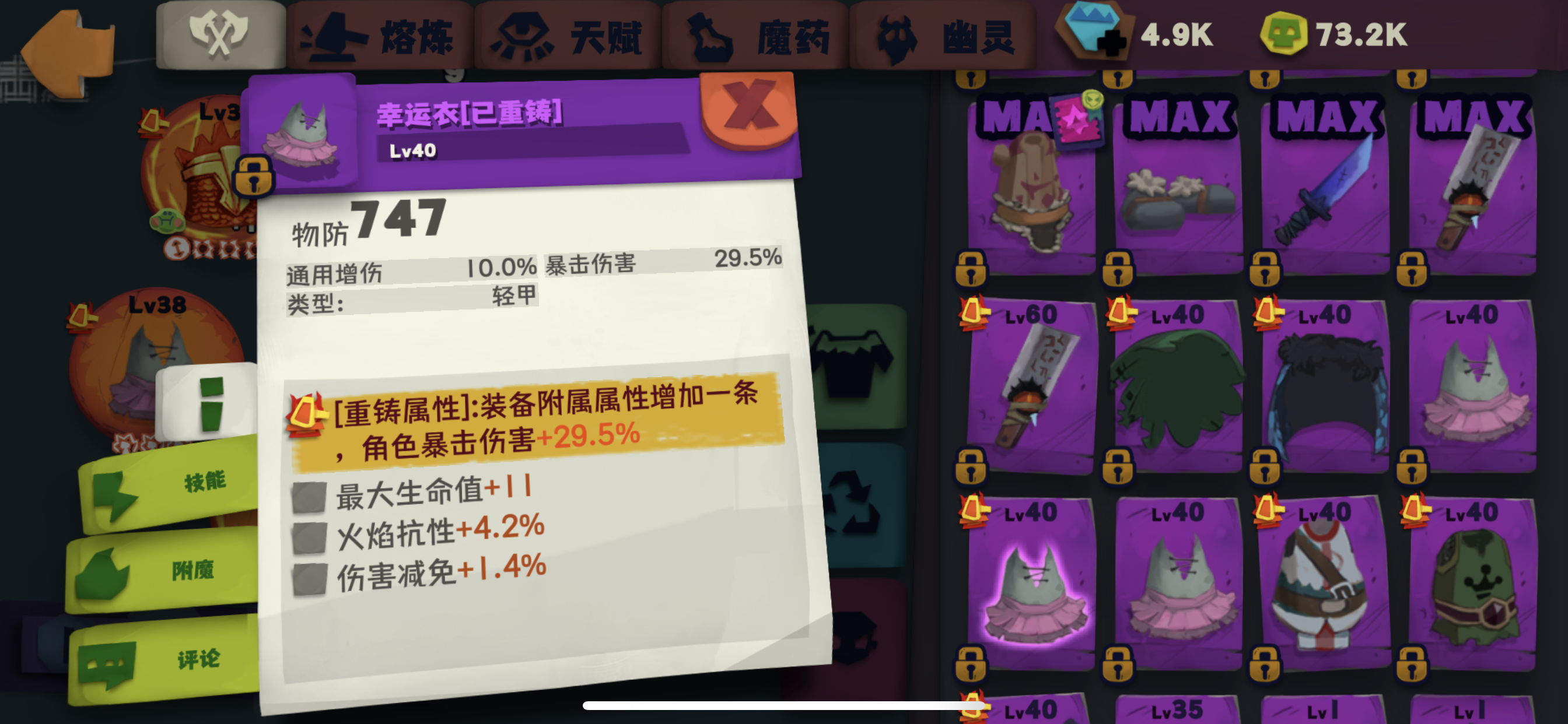 s3脱坑500层都没到,过年前回坑玩家。差一个头和衣服就重铸毕业了吧。结果刷了上百次套装都没一个彩虹,概率也太感人了吧。工艺传奇幽灵也难出,才2只!装备部都2个6级啦~佛系慢慢玩吧!小裙子是3孔好还是暴伤好呢?